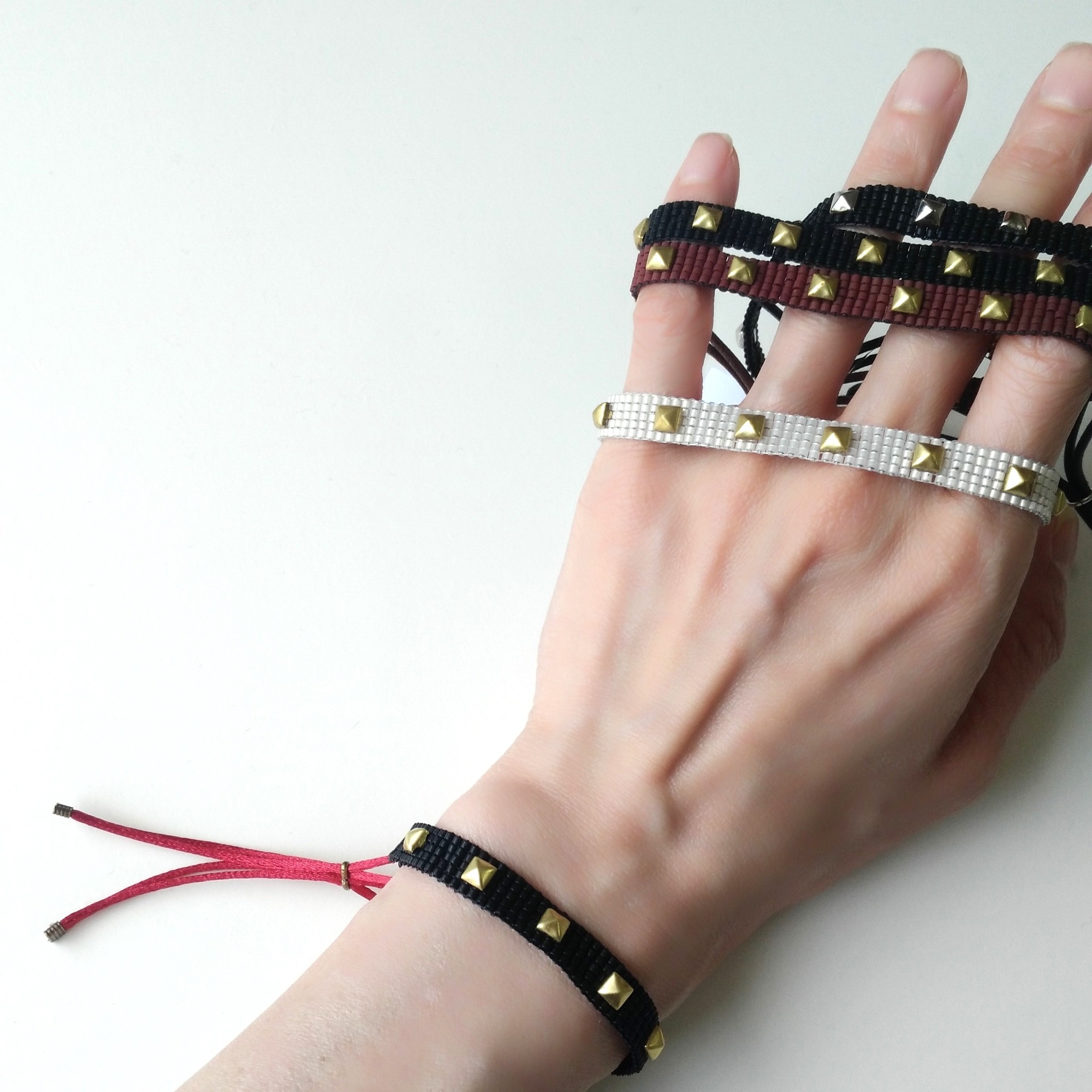 人気のスタッズ付ブレスレットに新色を加えてご紹介させて頂きます。