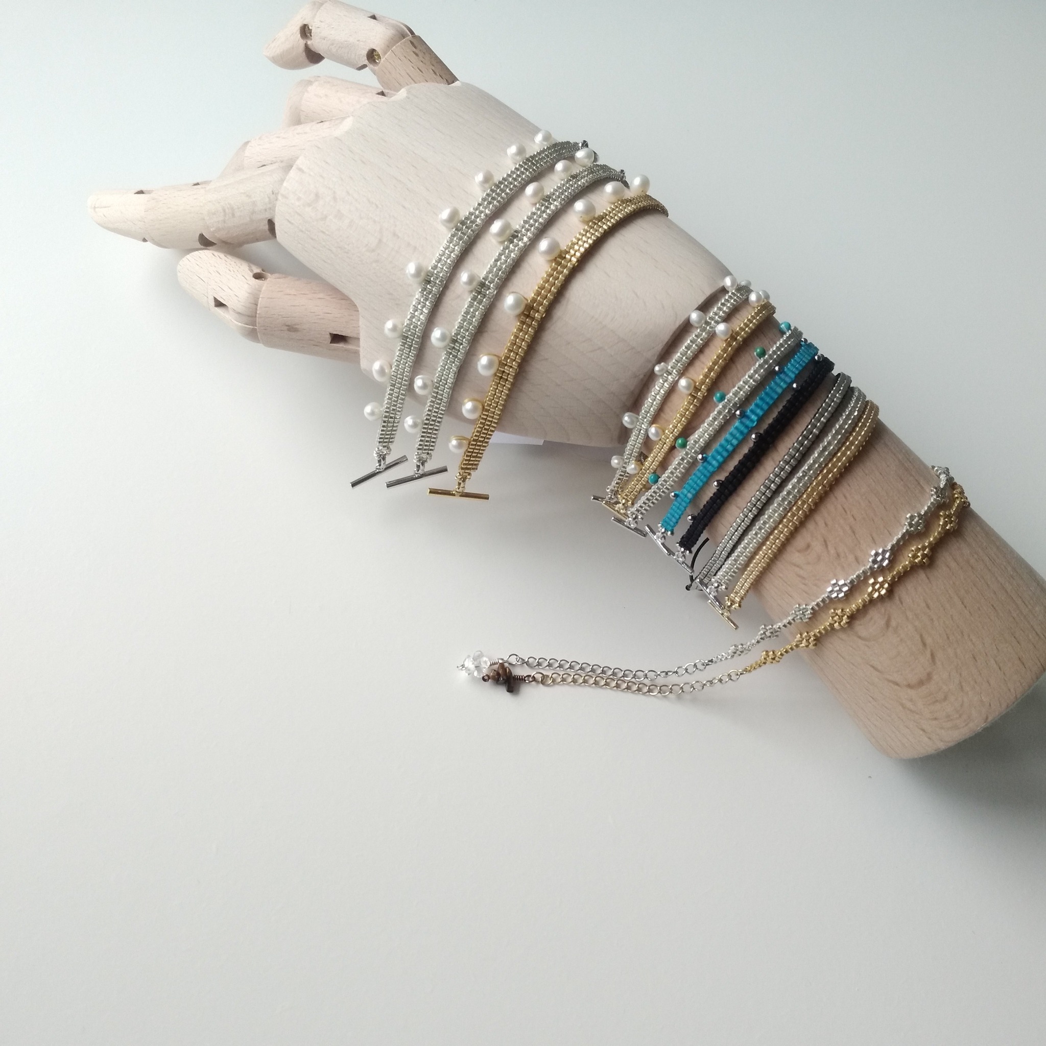 淡水パール、ターコイズ、メタルパーツをあしらった