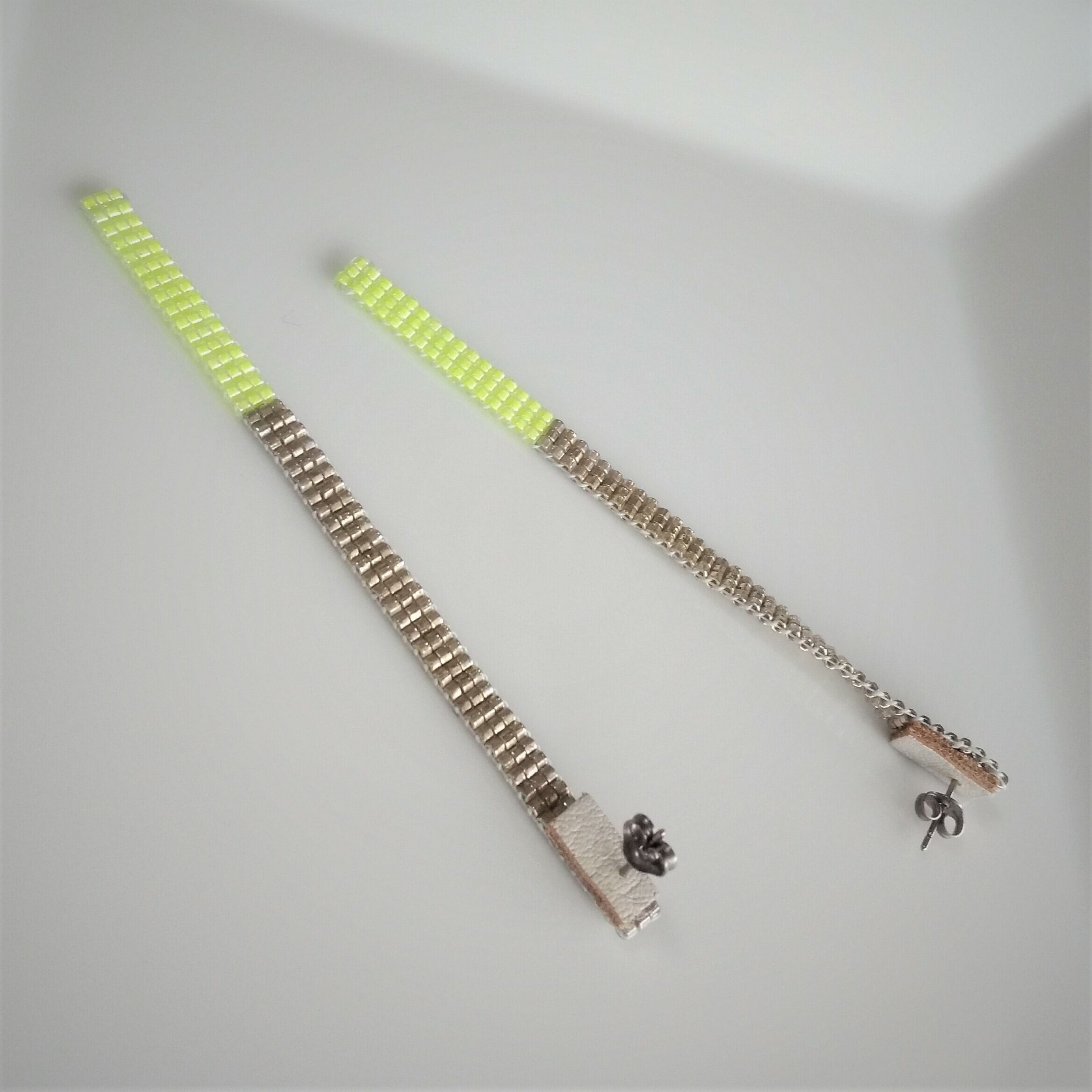 ガラスビーズ、レザー・チタン(ピアス)、真鍮(イヤリング)