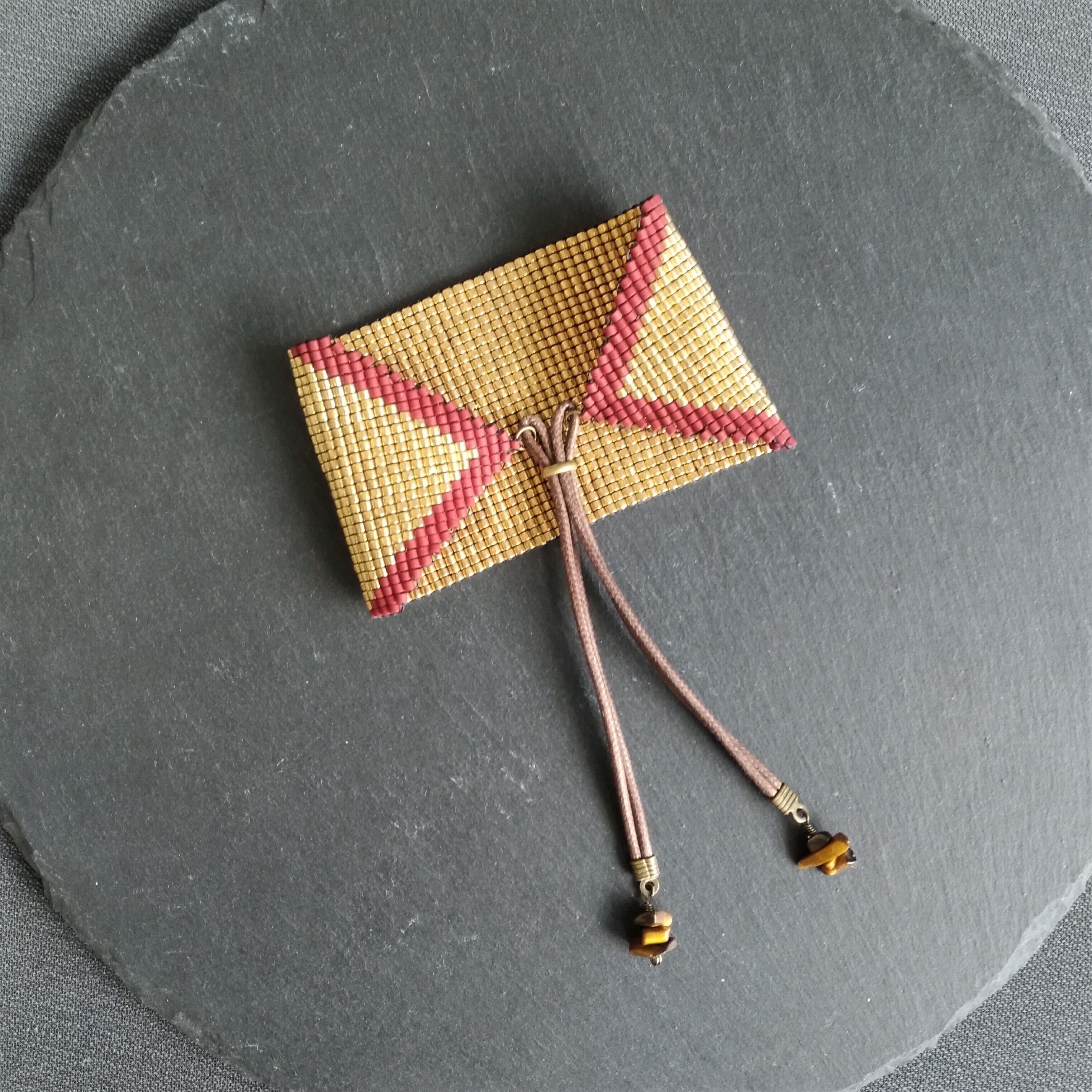 ガラスビーズ、天然石(タイガーアイ)、真鍮、コットン
