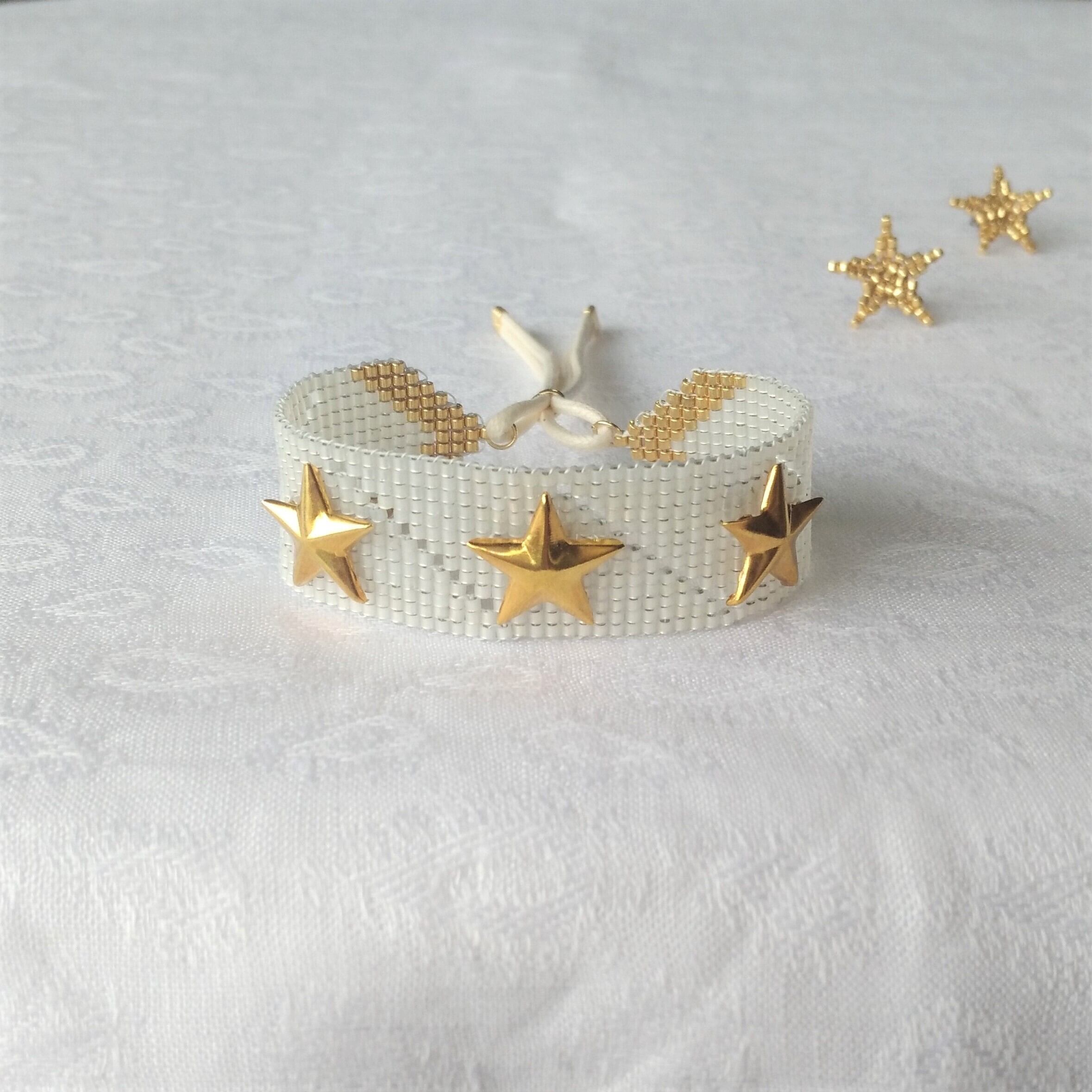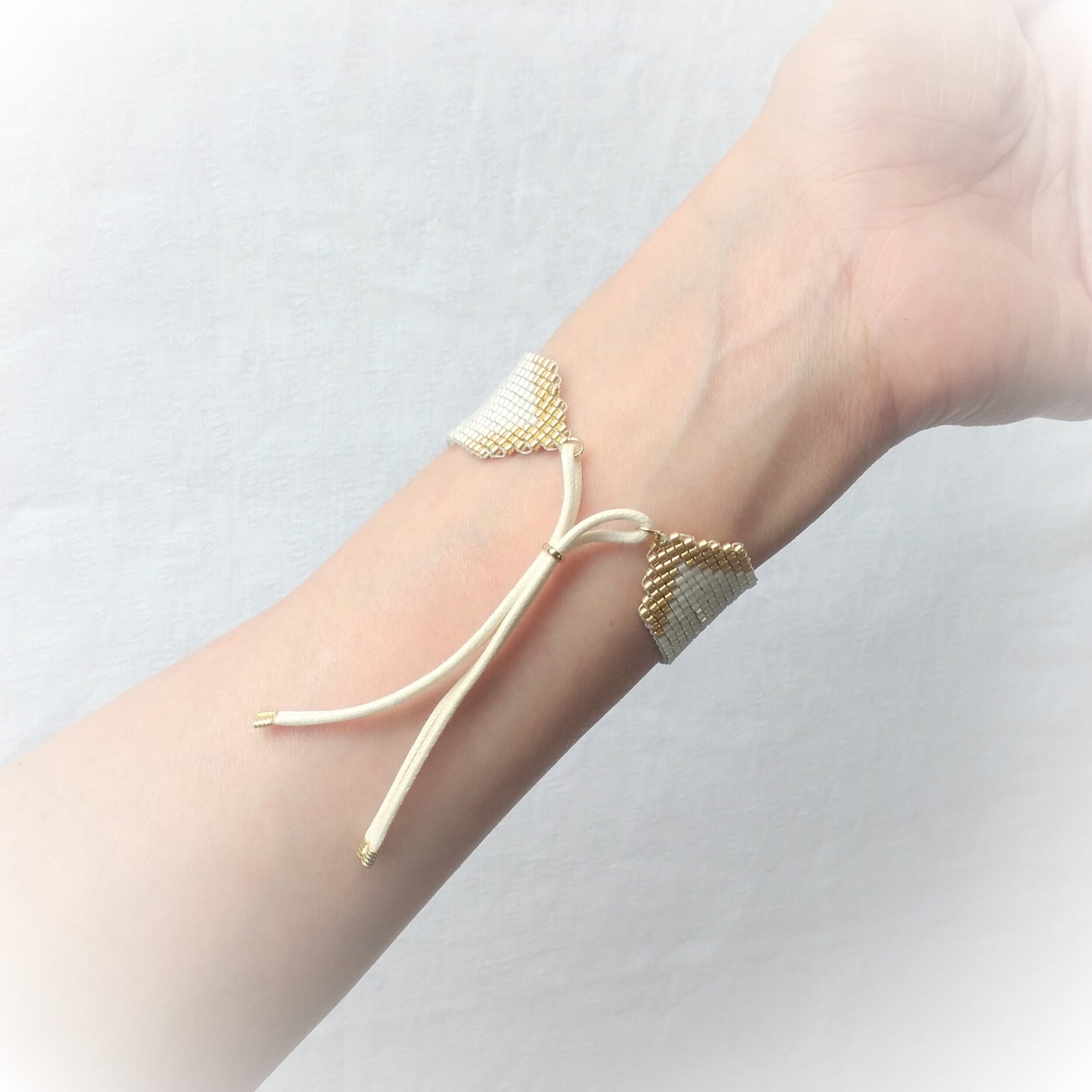 ガラスビーズを糸で丁寧に織り上げています。