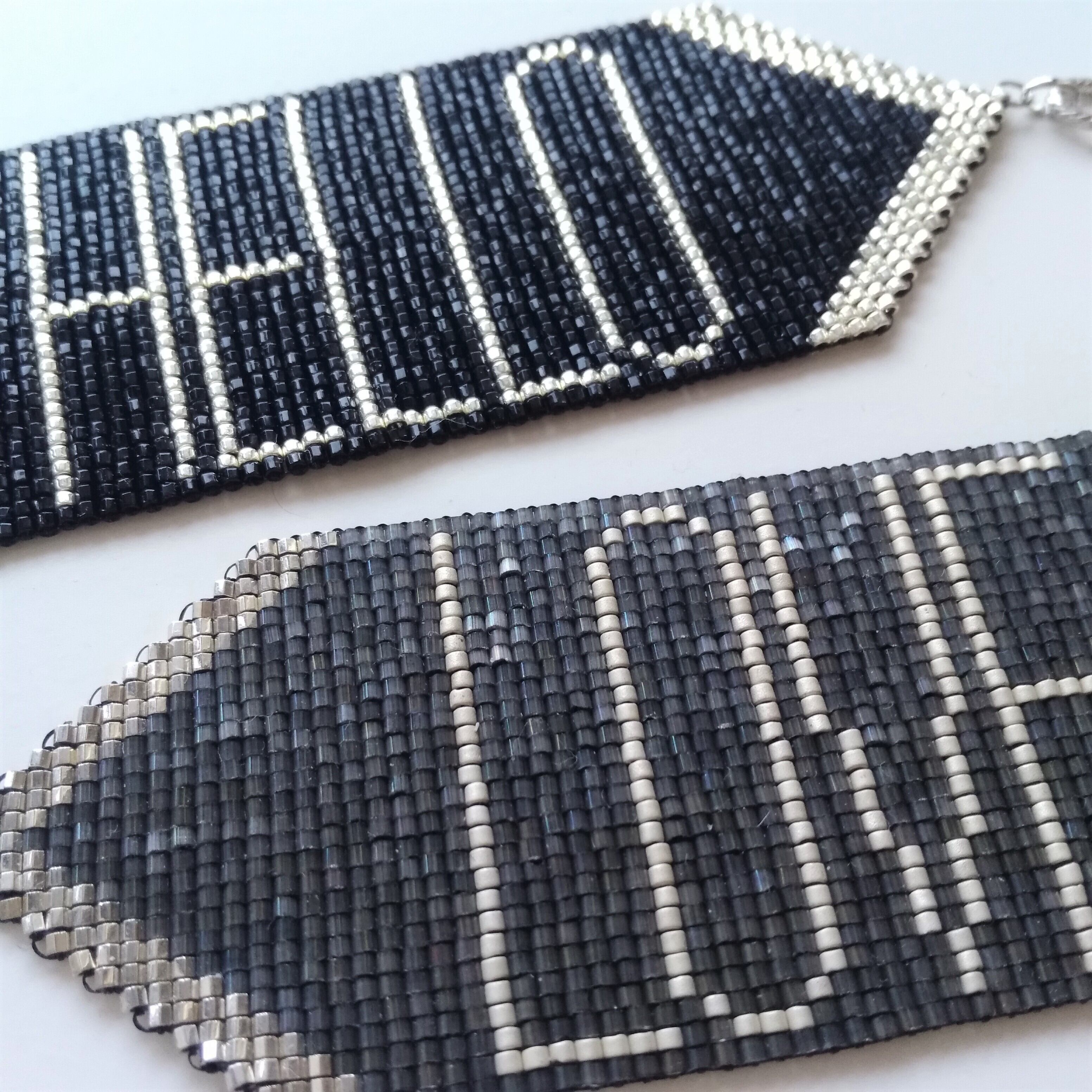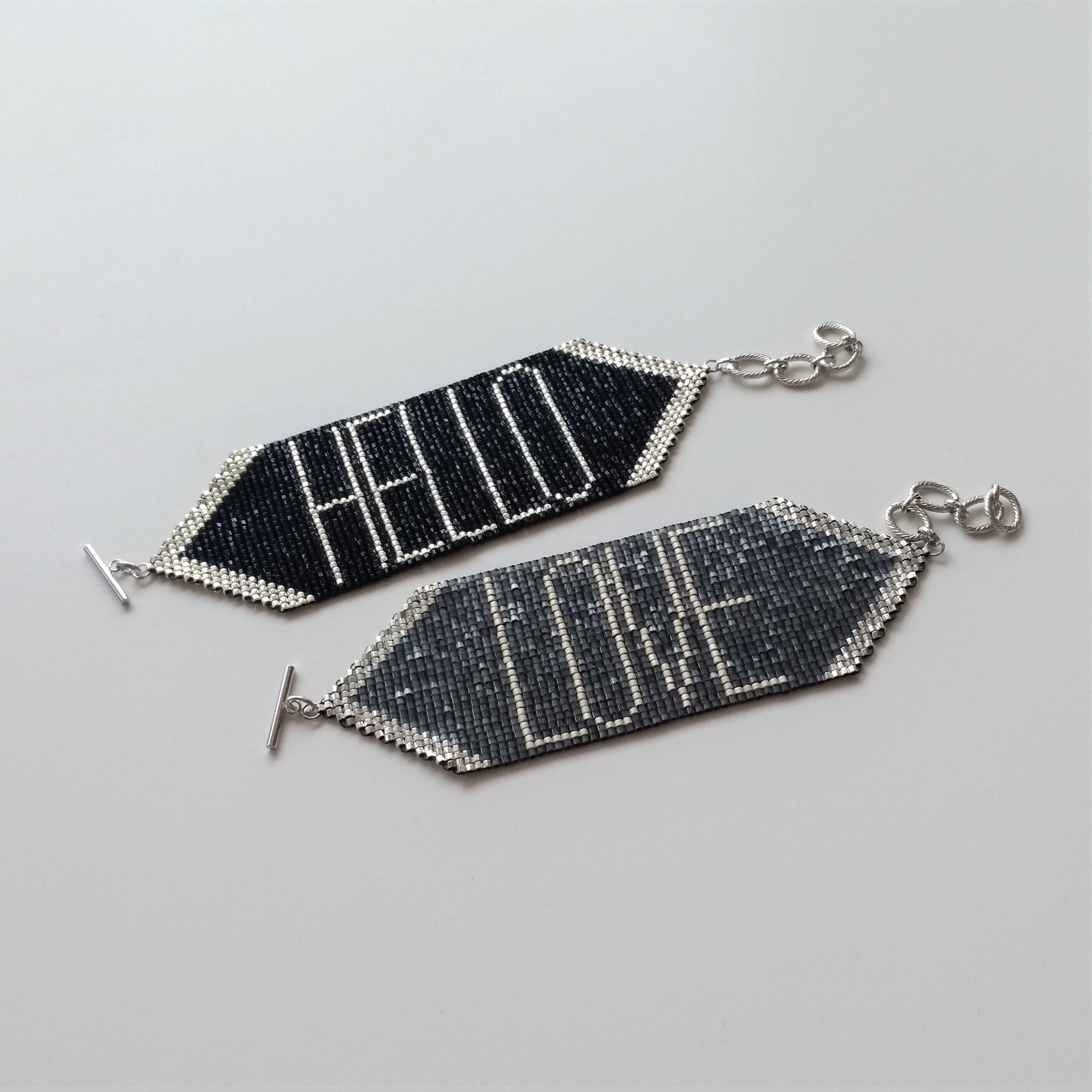 ベースカラーのブラック(HELLO)・グレー(LOVE)部分にカットビーズを使用しており