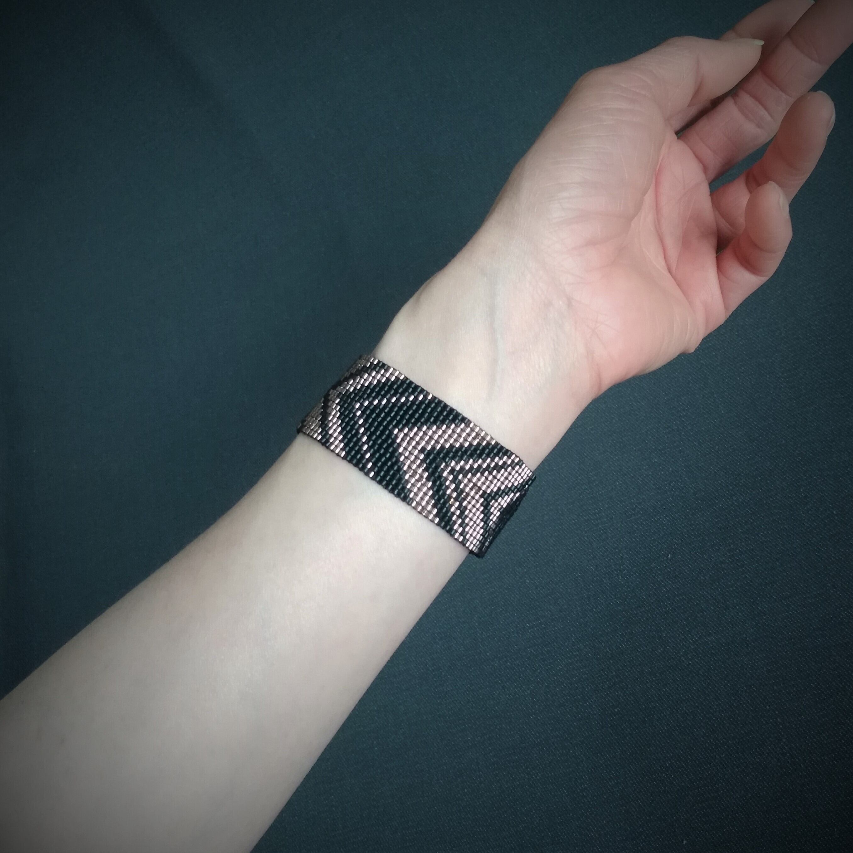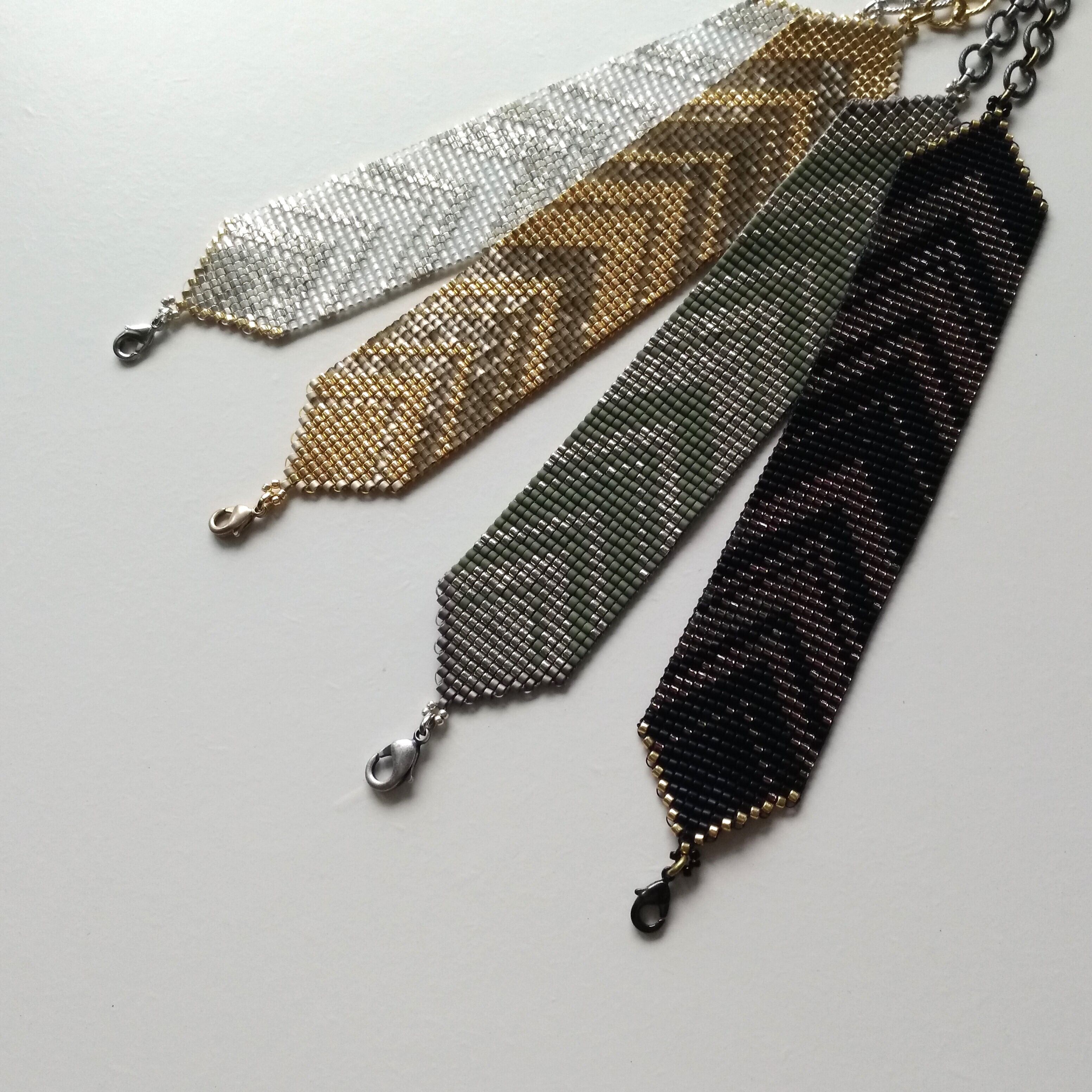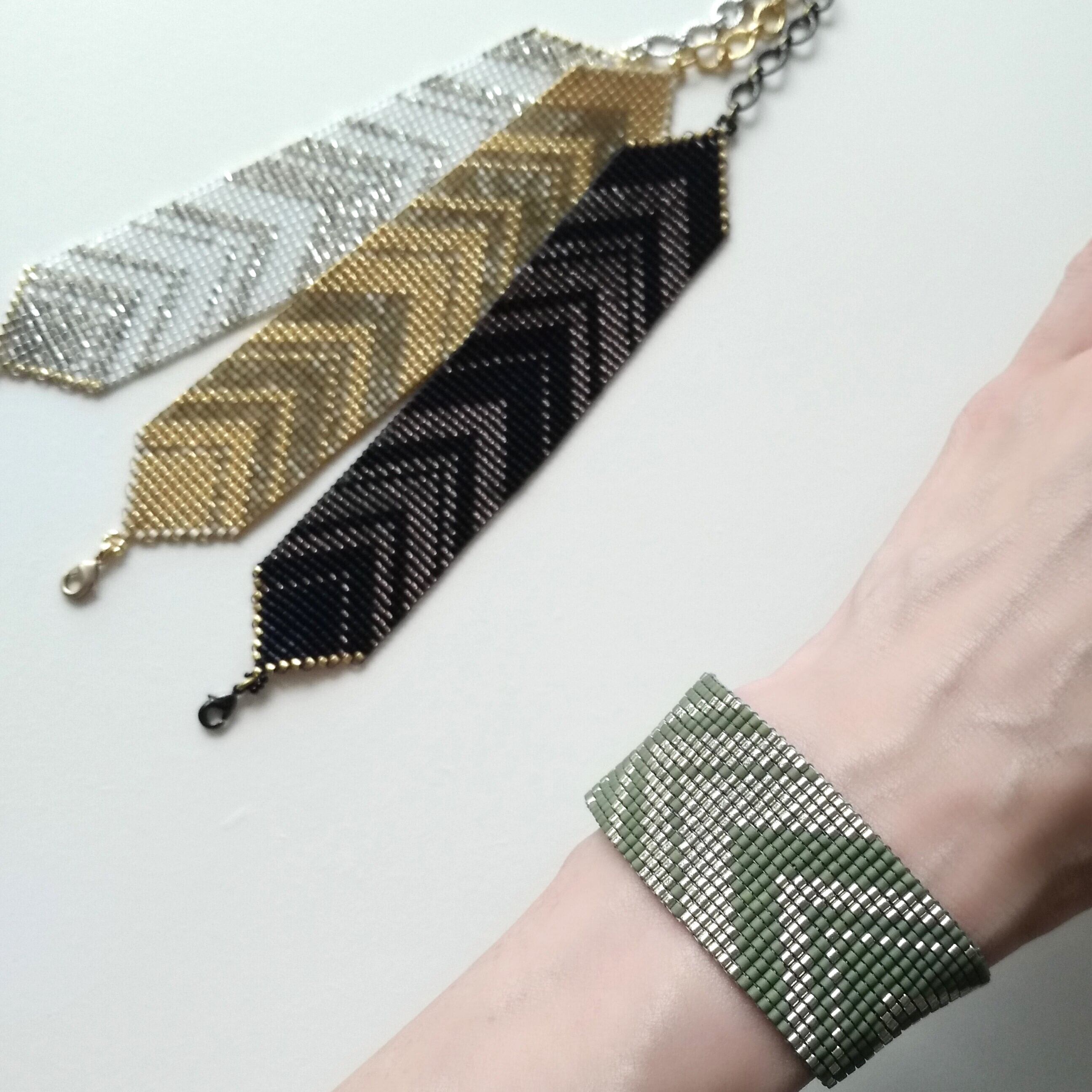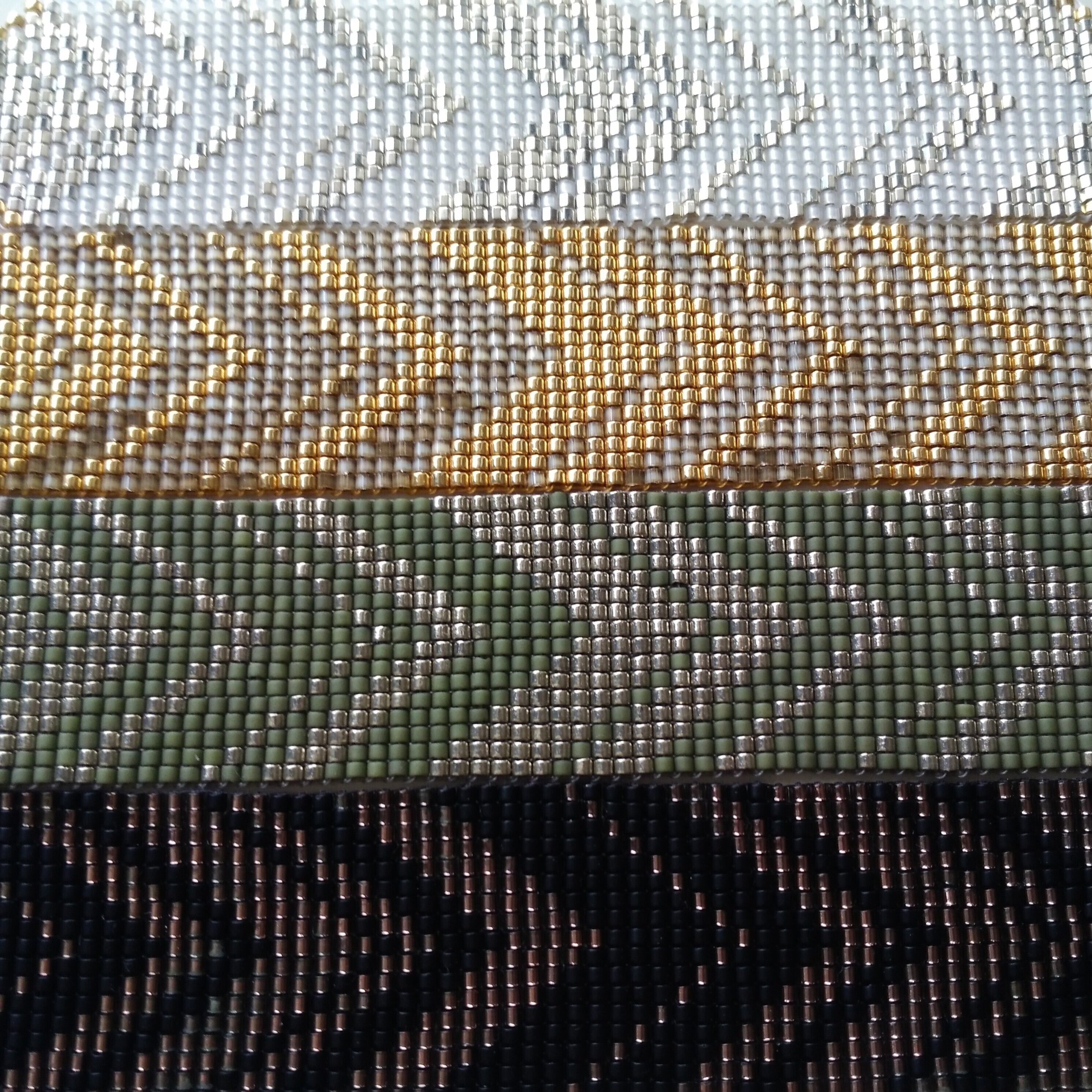 ガラスビーズを糸で丁寧に織り上げています。